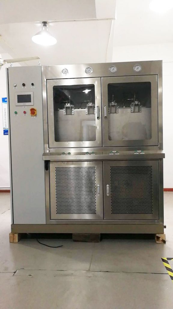 This particular machine was 100% developped, designed by WISDOM group, with max. test temperature of 150°C, max. pressure of 3MPa, it can test 4pcs devices in one time for both pressure and temperature in 5 min.